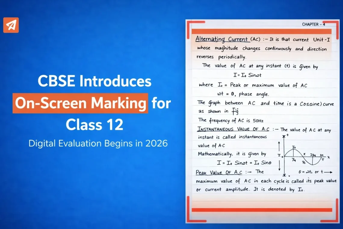 The Central Board of Secondary Education (CBSE) has announced the introduction of On-Screen Marking (OSM) for Class 12 board examinations starting in 2026. This marks a significant step toward modernising India’s examination and evaluation framework, aligning assessment processes with the country’s rapidly evolving digital education ecosystem.